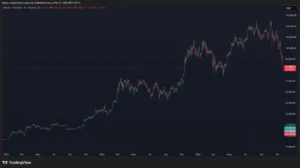 En el siguiente gráfico se observa cómo ha sido la cotización de BTC desde 2023 y se ven allí las áreas de posibles soportes mencionadas.