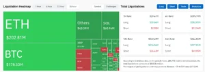 Este desequilibrio sugiere que muchos traders estaban excesivamente posicionados al alza, esperando un rebote que no llegó. Cuando el precio continuó cayendo, las liquidaciones forzadas amplificaron el movimiento bajista, aumentando la presión sobre el mercado.