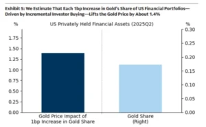 El banco estima que un aumento de sólo un punto básico (0,01%) en esta asignación elevaría el precio del oro en un 1,4%, lo que sugiere que, si el miedo a la devaluación monetaria o la inestabilidad fiscal en Estados Unidos crece, la entrada de capital privado podría disparar el precio mucho más allá de las proyecciones actuales, añadió el análisis.